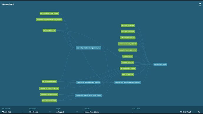 First, we’ll start with common staging models for a single data source. An example of this is Fivetran’s dbt package for Netsuite. Models are great for one particular source data or for sources that have industry-standard metrics or any code that analysts are re-creating